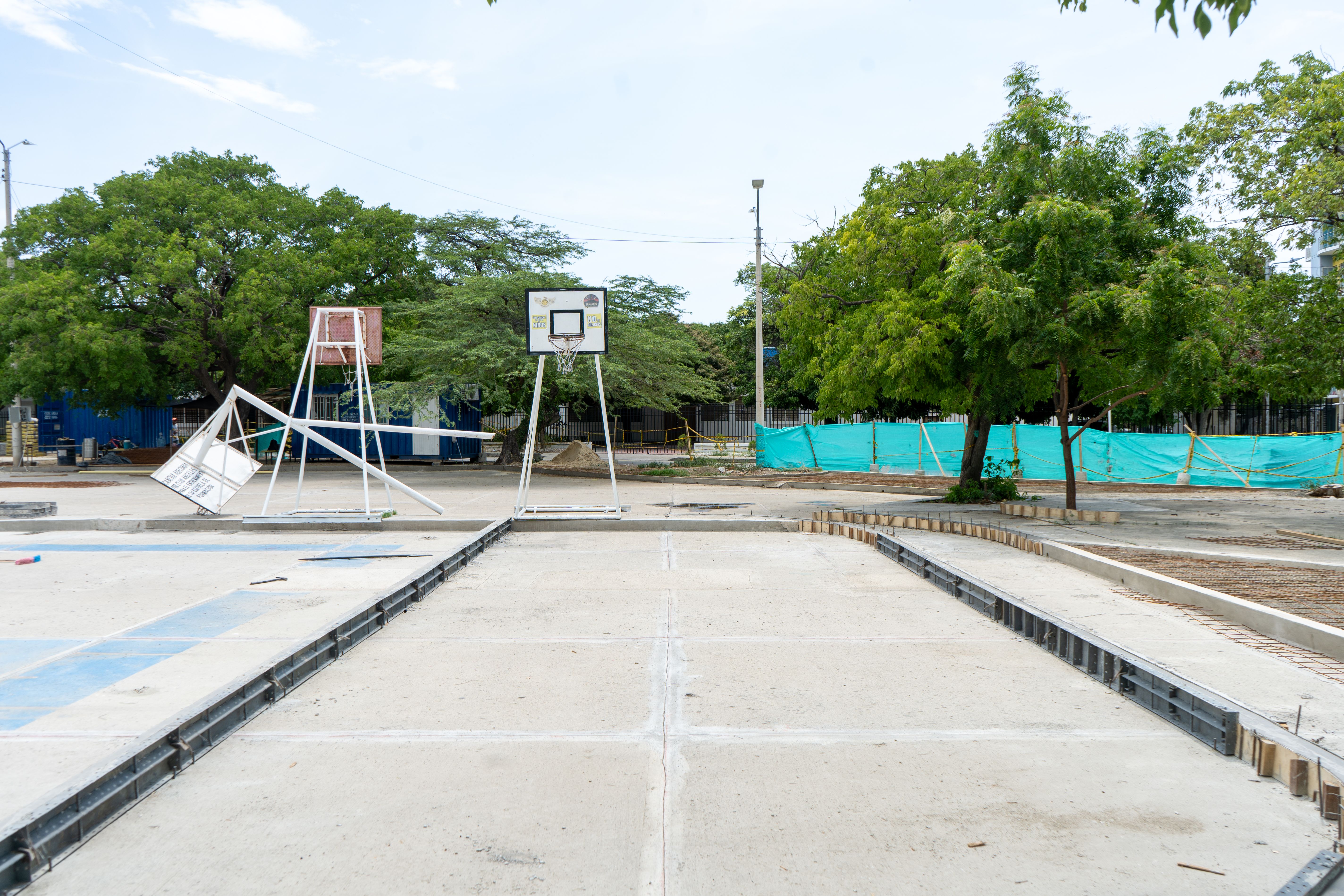 Antes de la transformación, las canchas de baloncesto presentaban un notable desgaste por el paso del tiempo y la falta de mantenimiento.